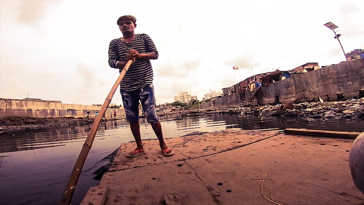 Sanjay Waghela built a makeshift raft to help people cross a filthy canal in the Indian city of Mumbai - saving them time and money. A ride costs just two rupees ($0.029).