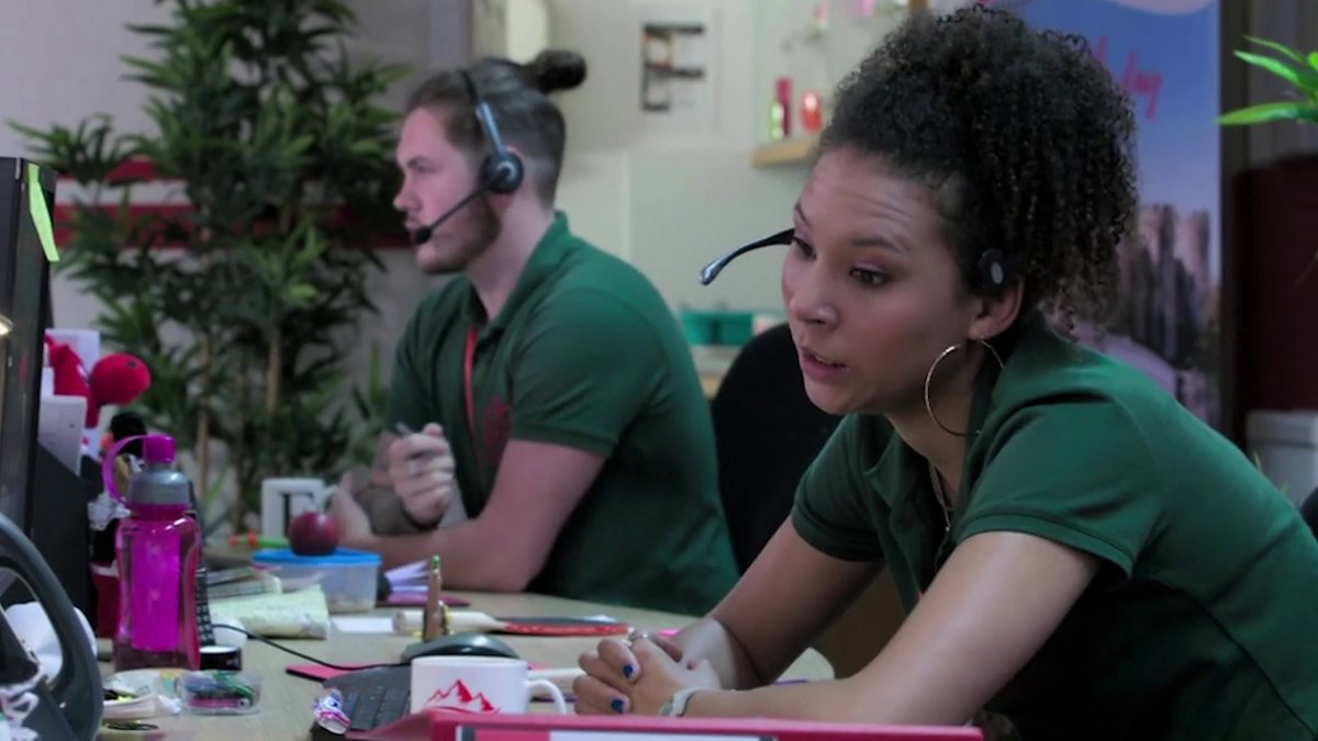 Wow! Wales call centre worker Kara talks a caller through the food on offer at the restaurants on Cardiff's Chippy Lane