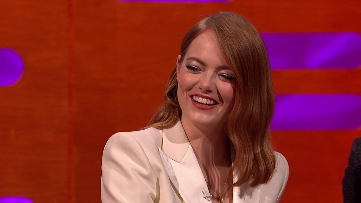 Emma Stone tells Graham about her role in The Favourite and how the film’s costume department ended up making her feel a little sore.
