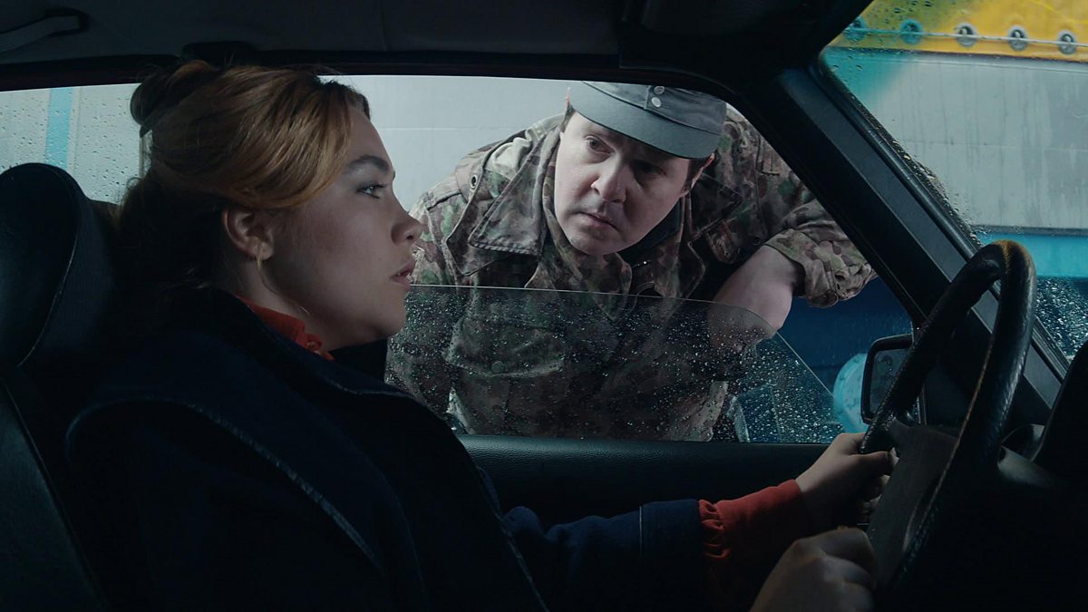 Stopped at the Austrian border, Charlie anxiously awaits as two checkpoint guards search her car.