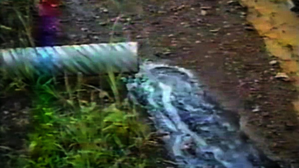 A farmer shows home videos of the toxic waste that has killed his livestock and polluted the water surrounding his farm.