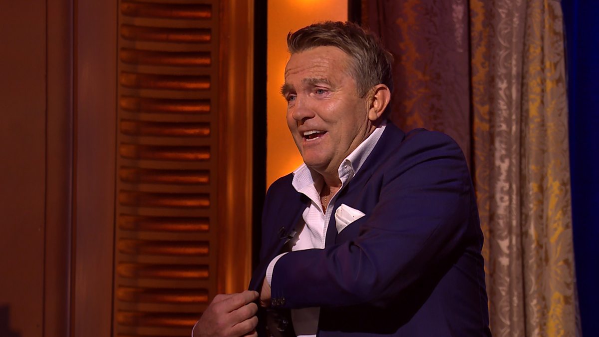 When Michael asks Send To All guest Bradley Walsh to hand over his phone, Bradley surprises him by throwing it across the stage.