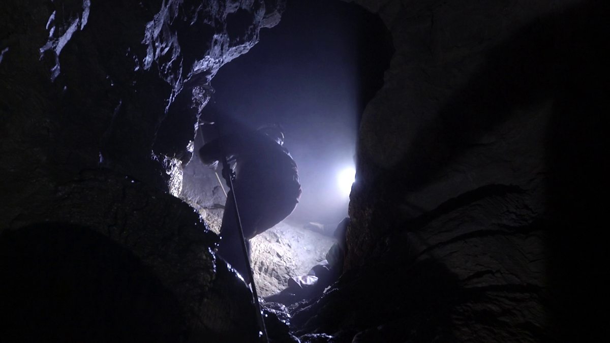 Will endures 'the choke' in the longest cave in Britain, Ogof Craig a Ffynon.