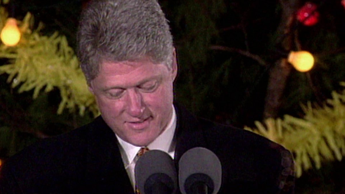 President Bill Clinton switches on the Christmas lights at Belfast's City Hall in 1995.