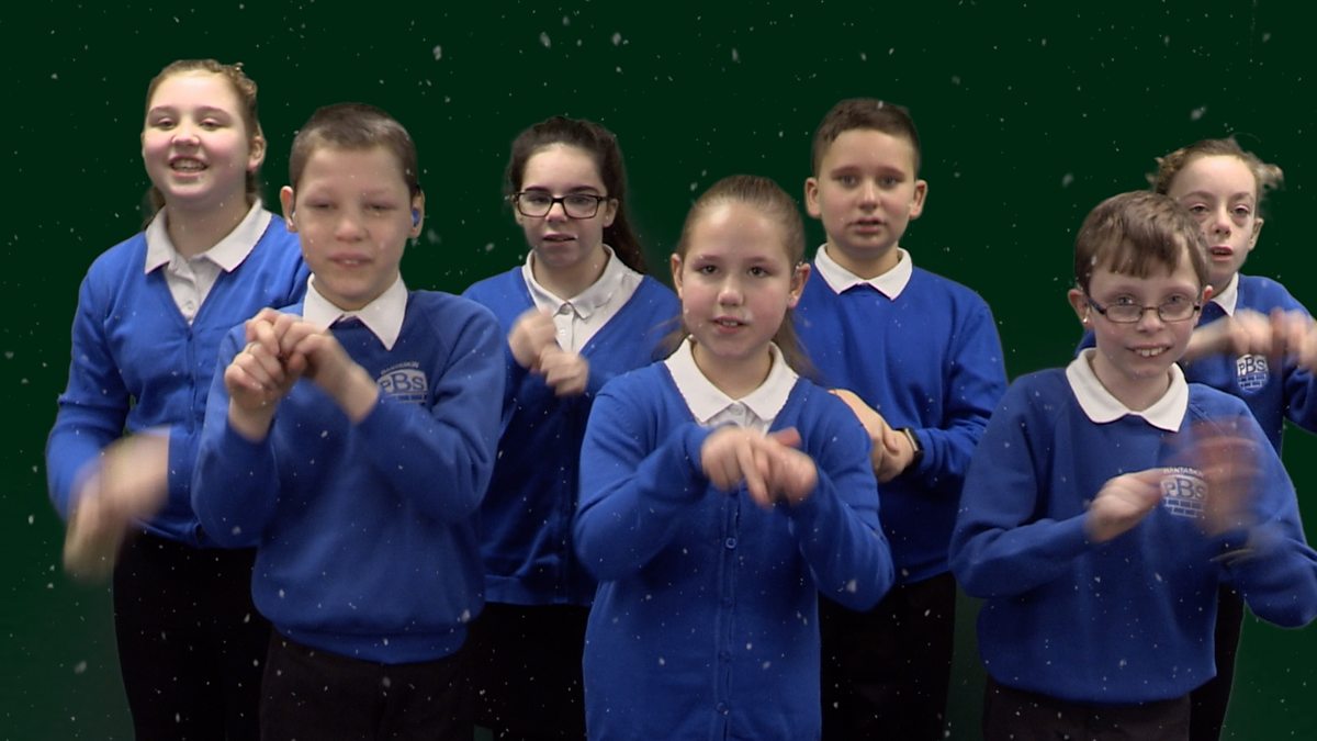 Oh what fun it is to ride! The pupils of Windsor Park Primary are joined by some very special guests to help sign a festive favourite song.