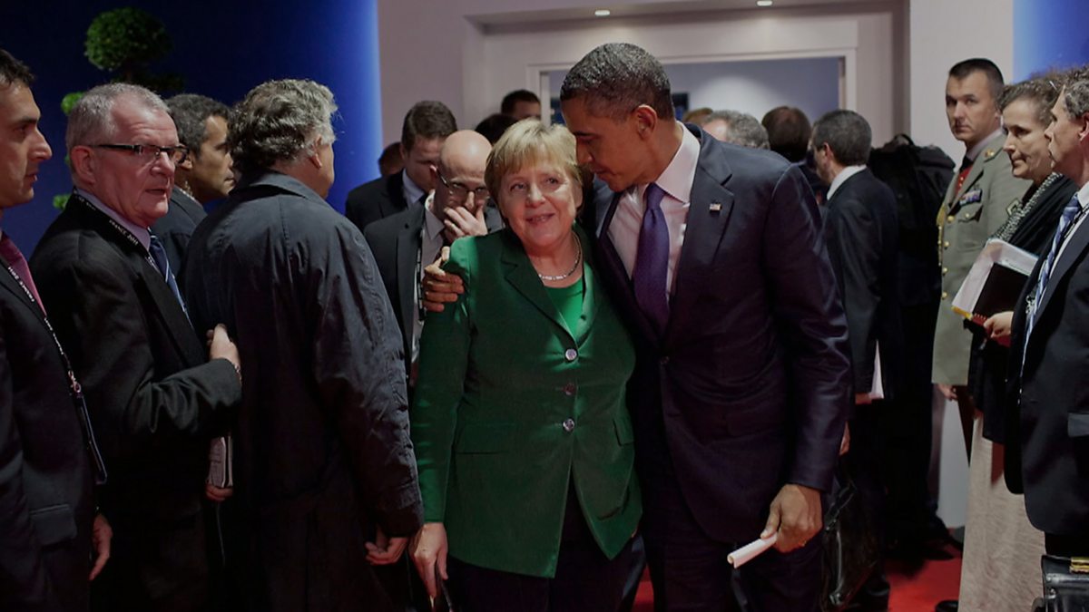 Herman Van Rompuy and Nicolas Sarkozy, explain how the German Chancellor felt isolated at a meeting where President Obama put pressure on increasing the Eurozone's financial firewall.