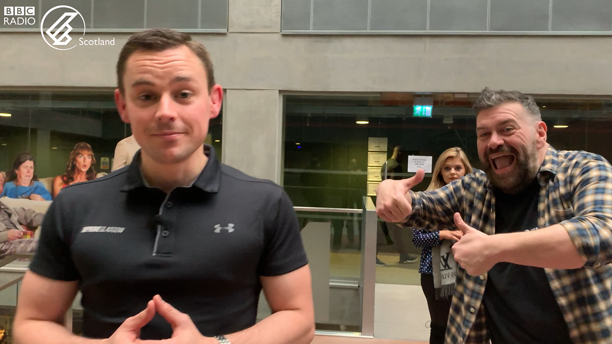 Actor Tom Urie and fitness expert Ross Stewart demonstrate exercises you can do anywhere