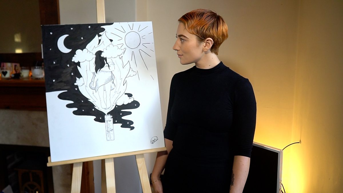 The 25-year-old Manchester artist is drawing representations of the "agony" she experiences: