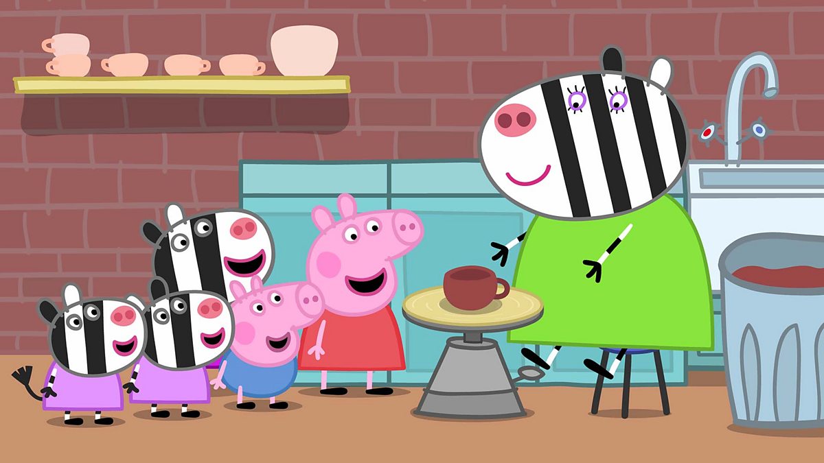 Mrs Zebra teaches Peppa, George, Zoe, Zaza & Zuzu Zebra how to make a real tea set from clay.