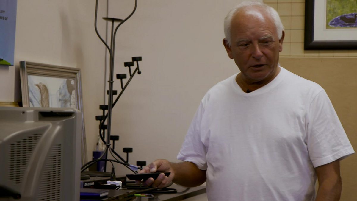 Manchester Morris Men's instructor Little George attempts to teach novice dancer Richard Macer the steps to a traditional Cotswold folk dance, Constant Billy, with comical results.