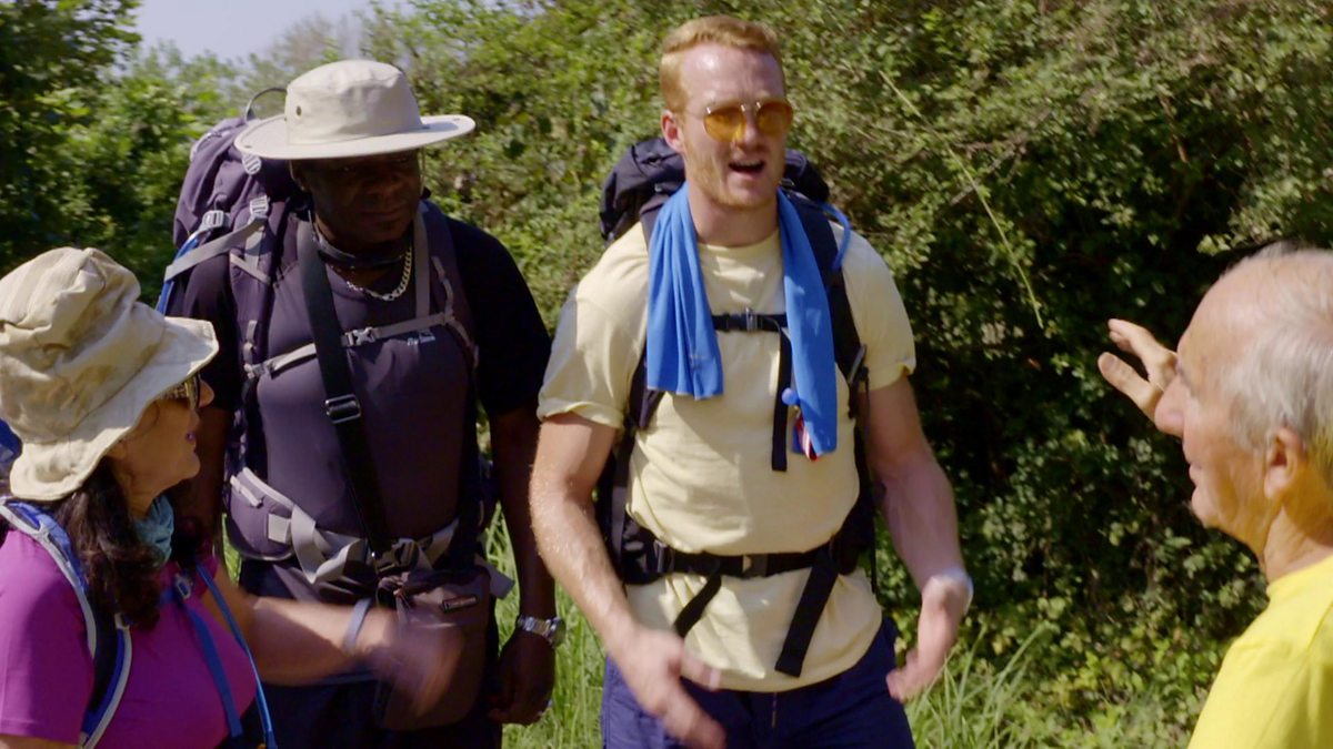 Lesley, Greg, Stephen and Mehreen meet local 80 year old legend, Carlo. Carlo has been helping "lost" pilgrims for decades and tempts them with a drink to visit his bar.