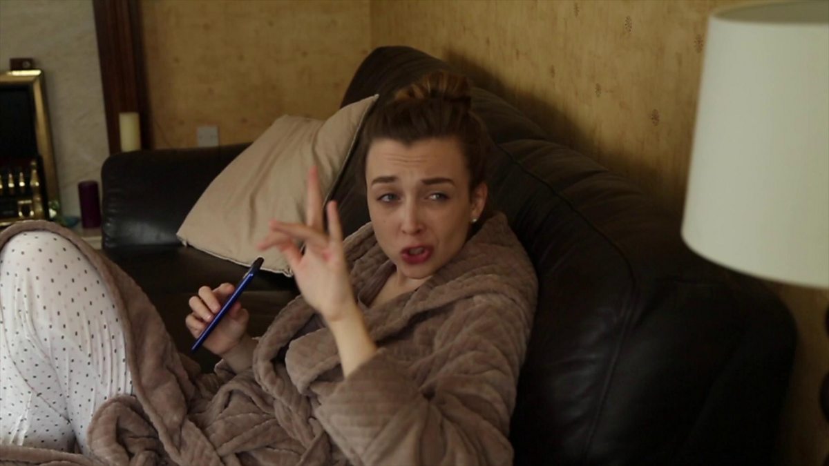 Rebecca walks through the door and the first thing she does is put pyjamas on. You're not right if you sit about in jeans all day!