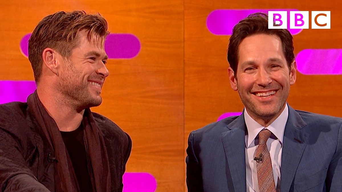 Paul Rudd and Chris Hemsworth discuss the popular fan theory of Ant-Man being the Avenger to defeat Thanos by shrinking down, entering his butt and expanding inside him.