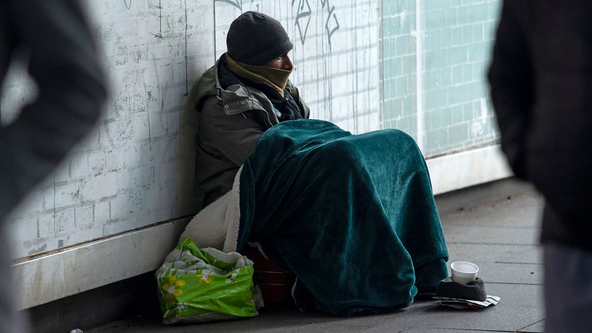 (Image: Homeless man seated on ground. Credit: Getty Images)