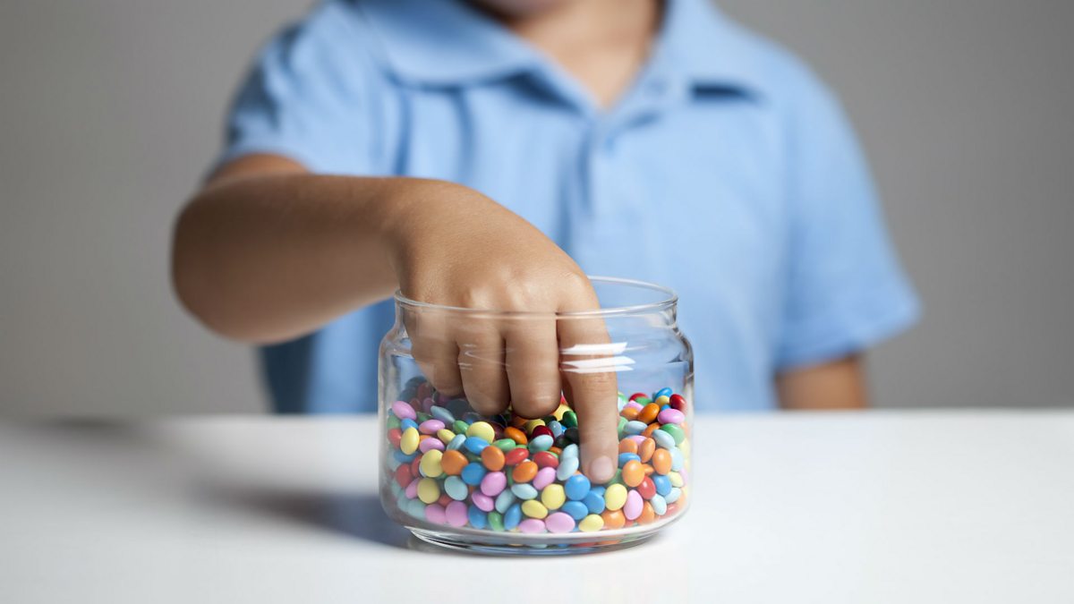 (Image: Boy with hand in a sweetie jar. Credit: Getty Images)