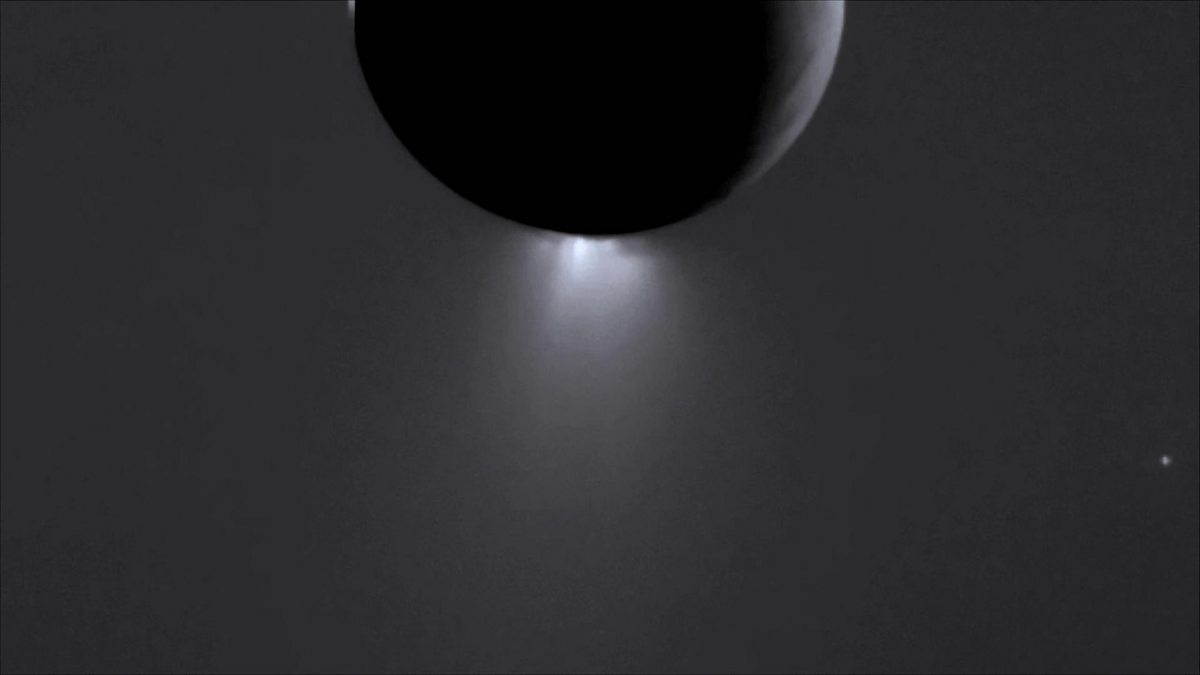Cassini discovers plumes of salty water rising up from Enceladus.