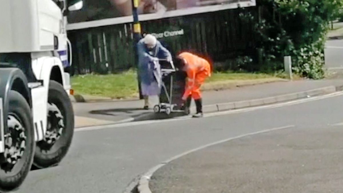 He says it is in his nature to help people after stopping his cement mixer to help a woman cross the road.