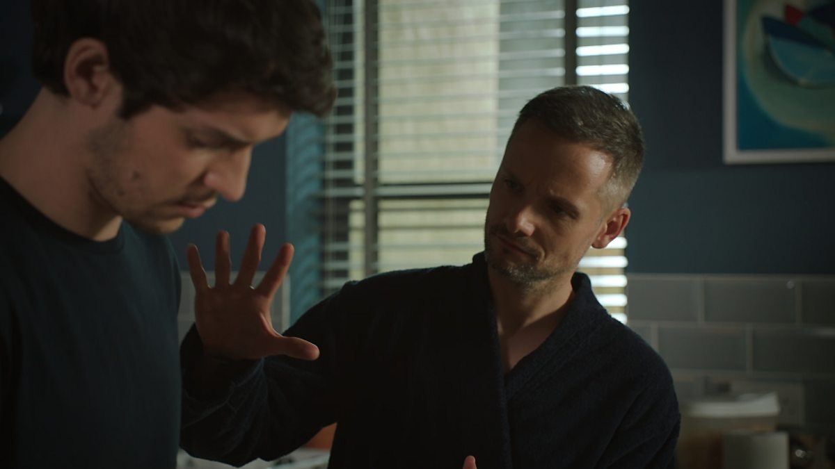 After overhearing a phone call Cameron gets seriously suspicious of Evan… What is he up to? With Nic Jackman, Jack Ryder and Ramin Karimloo.