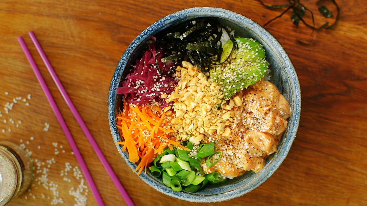 Nadiya shares her delicious Salmon Poke Bowl that you can rustle up in 15 minutes