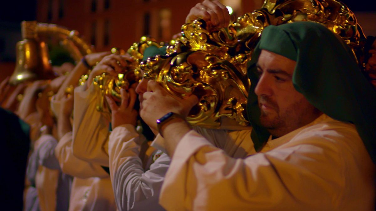 Throne bearers carry the sacred Esperanza throne