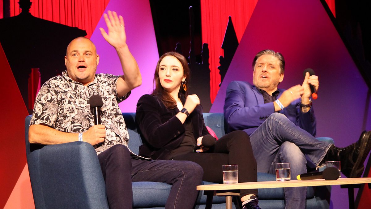 Janice Forsyth is joined on stage in the BBC Big Blue Tent by Craig Ferguson and Al Murray
