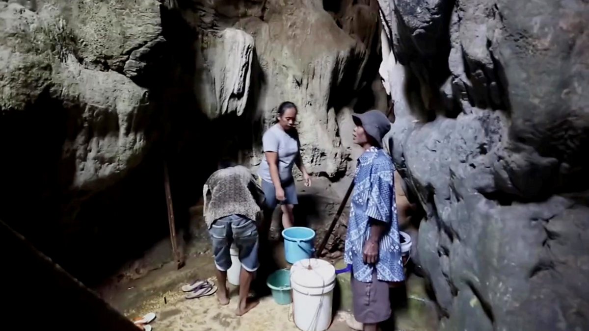 During Indonesia's summer months, in villages like Klepu in East Java province, the only source of clean water is in a 10m (33ft) deep cave.