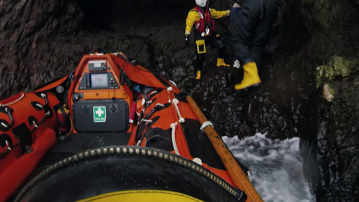 The crew of Dunbar lifeboat station battle a rising tide, big swells and underwater rocks to rescue three kids trapped in a cave.