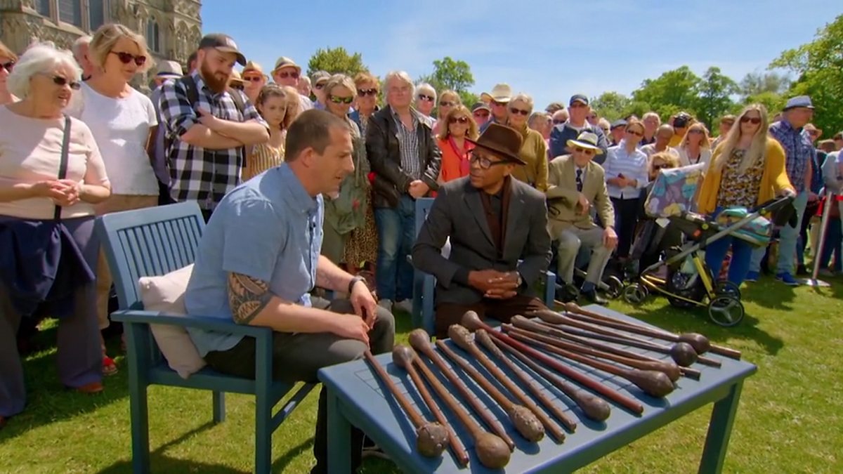 Ronnie Archer-Morgan admires a huge collection of African Tribal Clubs