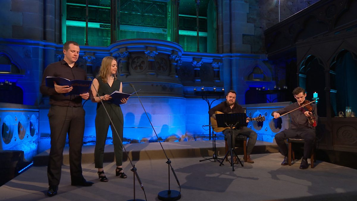 James Graham and Kim Carnie sing a Gaelic hymn.