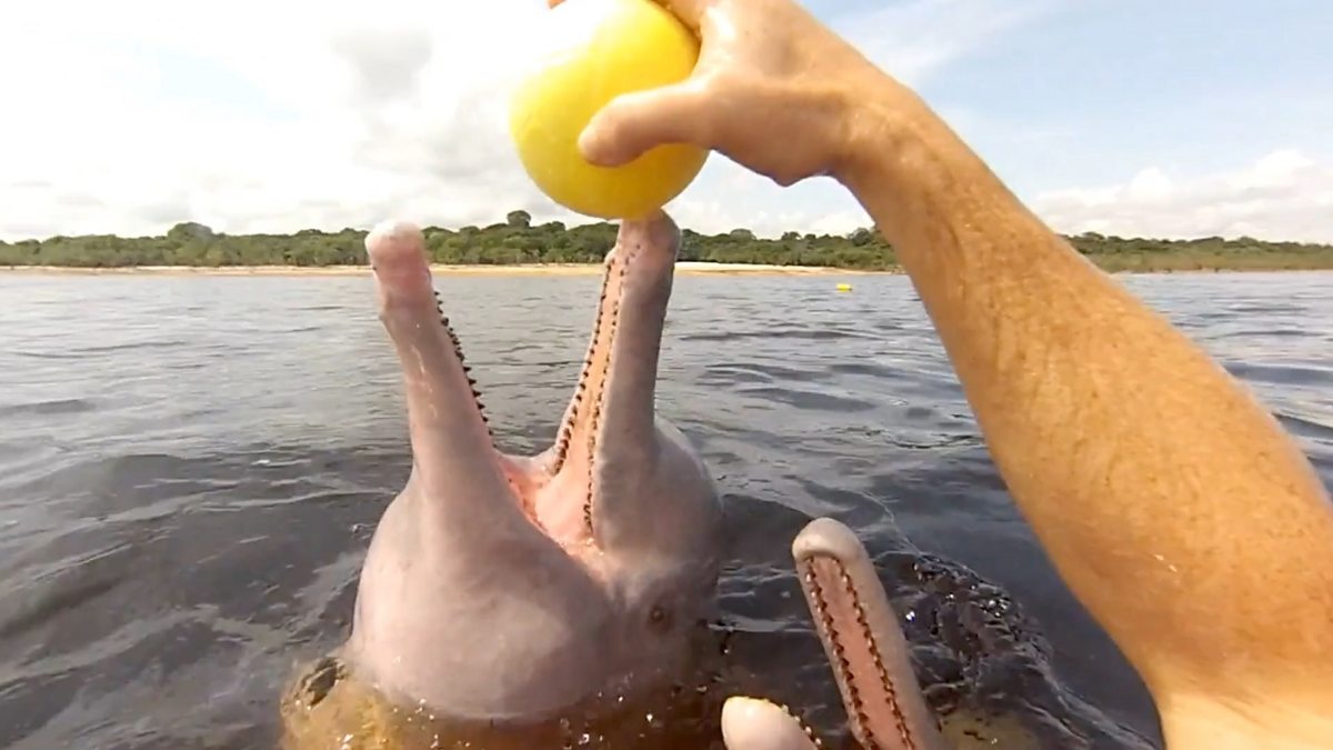 Physiotherapist Igor Simões Andrade gives monthly sessions to children with a range of physical and mental disabilities by taking them swimming with wild freshwater pink dolphins in the Amazon. The scheme is supported by the Brazilian government's environment agencies on the condition that the dolphins are not harmed.