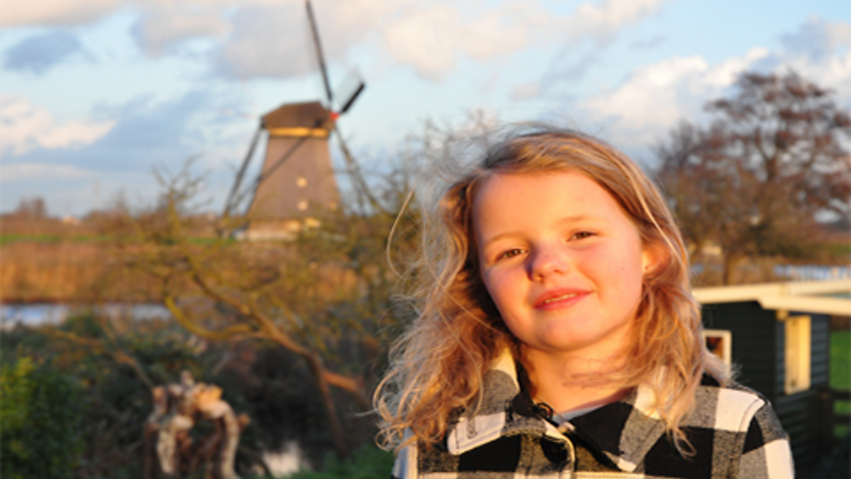 9-year-old Donna visits a windmill and sees a miller at work in Kinderdijk, Netherlands.