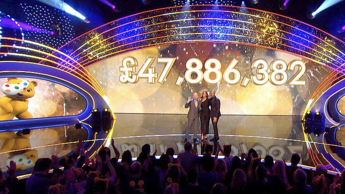 Marvin, Rochelle and Tom announce the total money raised for BBC Children in Need 2019.