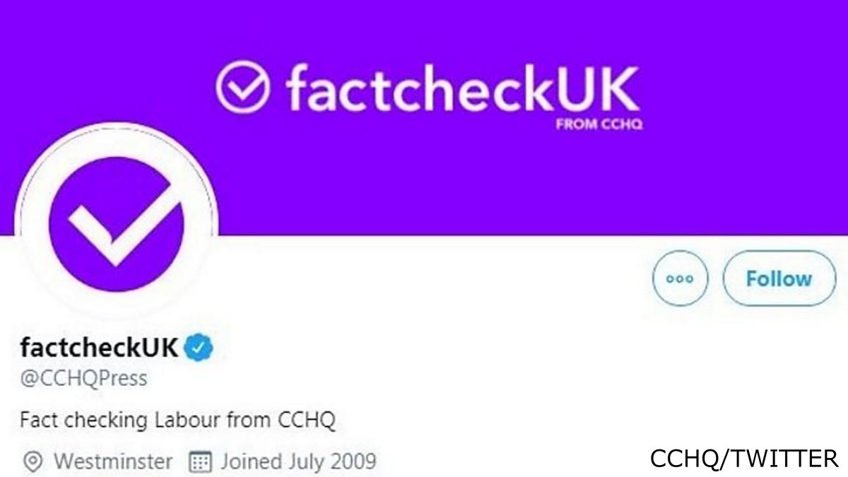 (Photo: screengrab showing @CCHQPress Twitter account title changed to factcheckUK. CCHQ/Twitter)