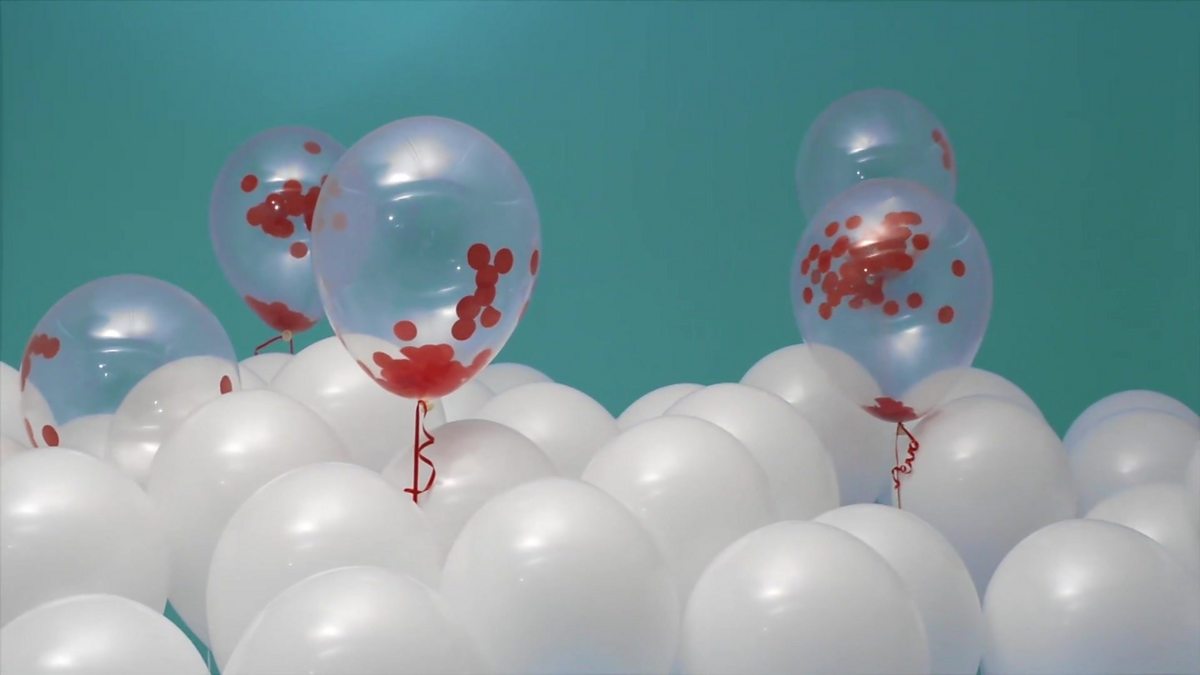 Image: Balloons filled with red spots, symbolising measles Credit: BBC