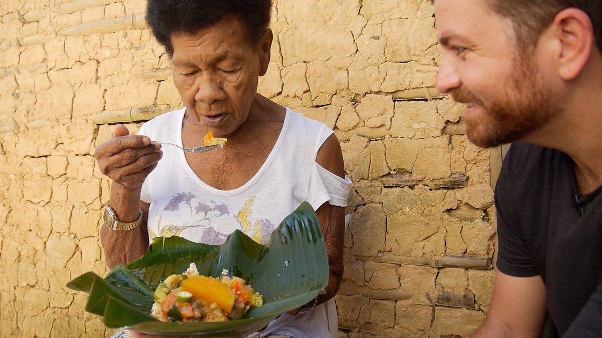 Image: TV chef Guga Rocha asks a lady to test his Quilombo dish Credit: BBC
