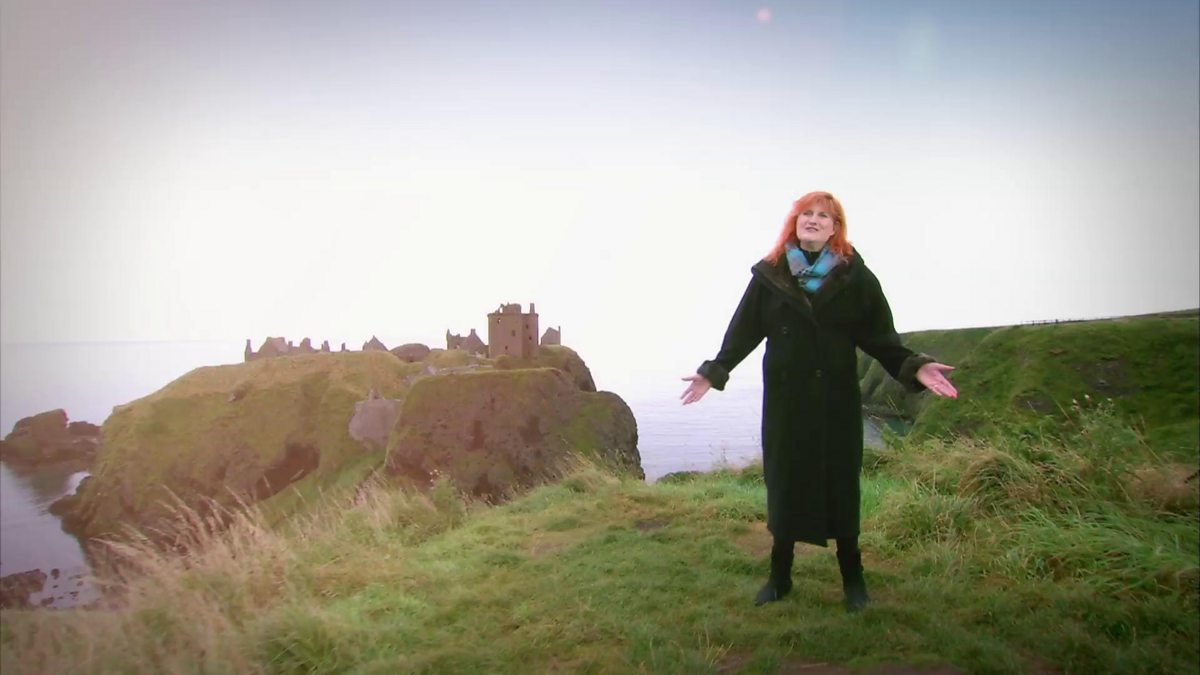 Singer songwriter Eddi Reader performs Amazing Grace at Donnottar Castle near Stonehaven in Aberdeenshire