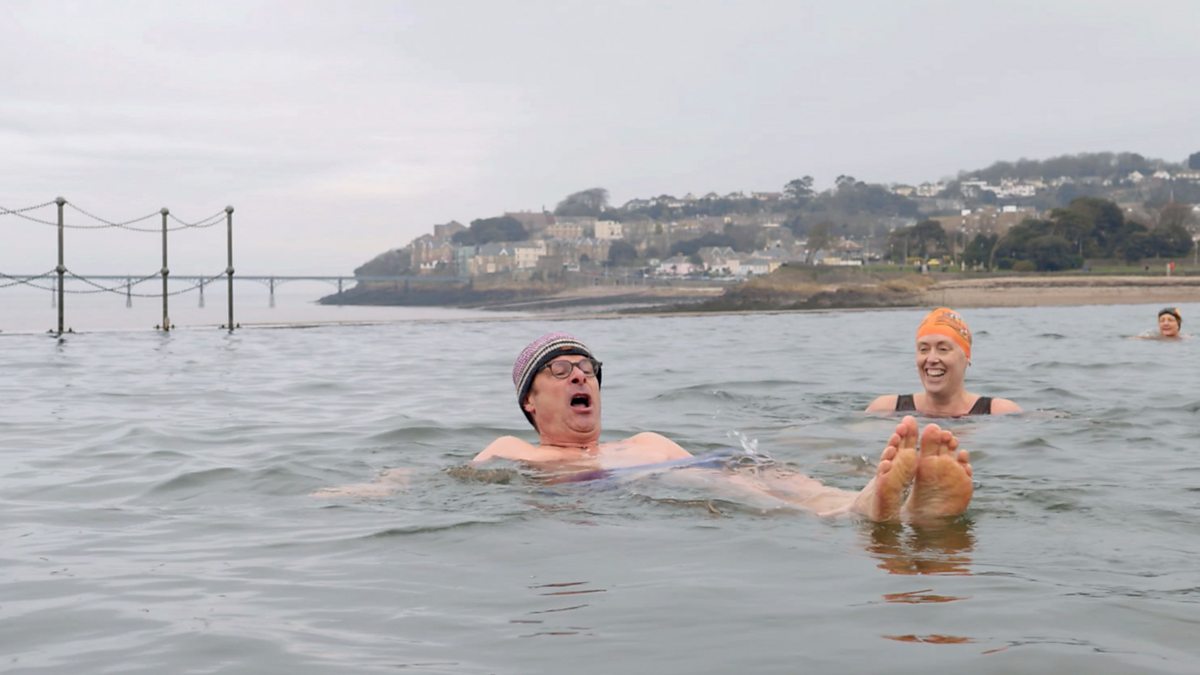 To tackle his stress and anxiety, Hugh goes swimming with some cold water converts in an outdoor lake.