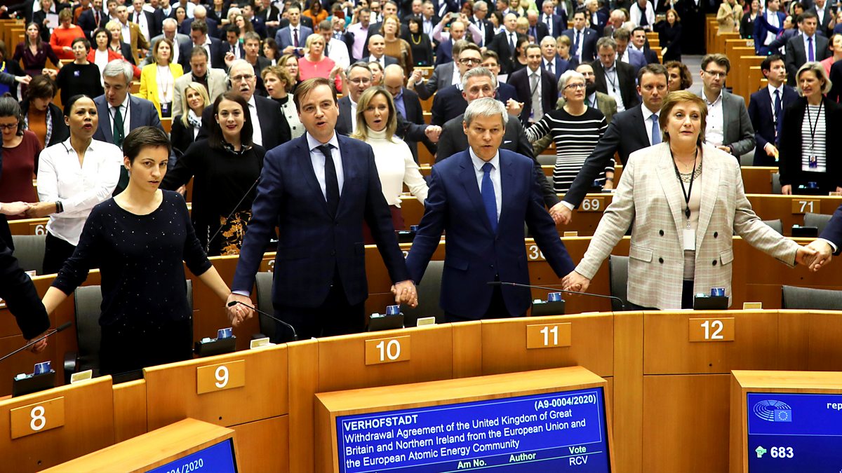 Members of the EU Parliament sang Auld Lang Syne as the Brexit withdrawal agreement was approved.