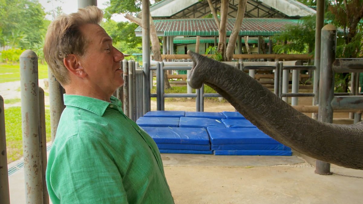Michael meets a long-term resident of the Friends of the Asian Elephant Hospital for wounded and damaged elephants, and helps to care for Mosha, who lost a leg when he stepped on a landmine.