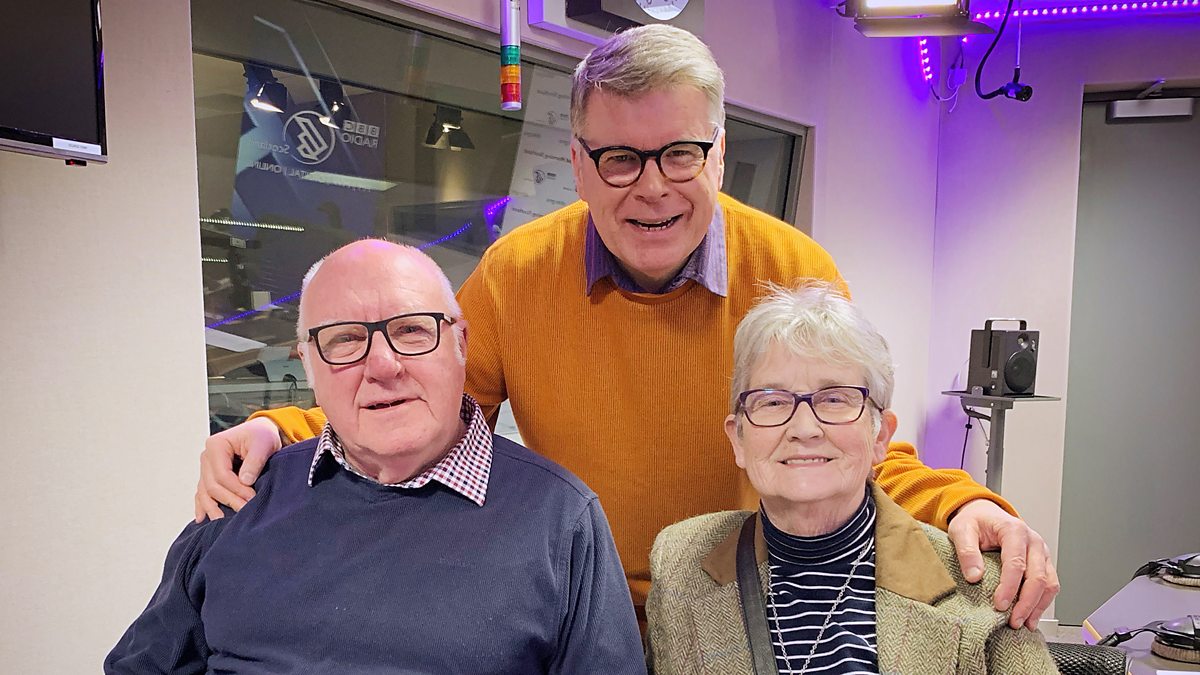 Air chèilidh air Iain Mac'illeMhìcheil bha Fiona is Alasdair MacAoidh.
