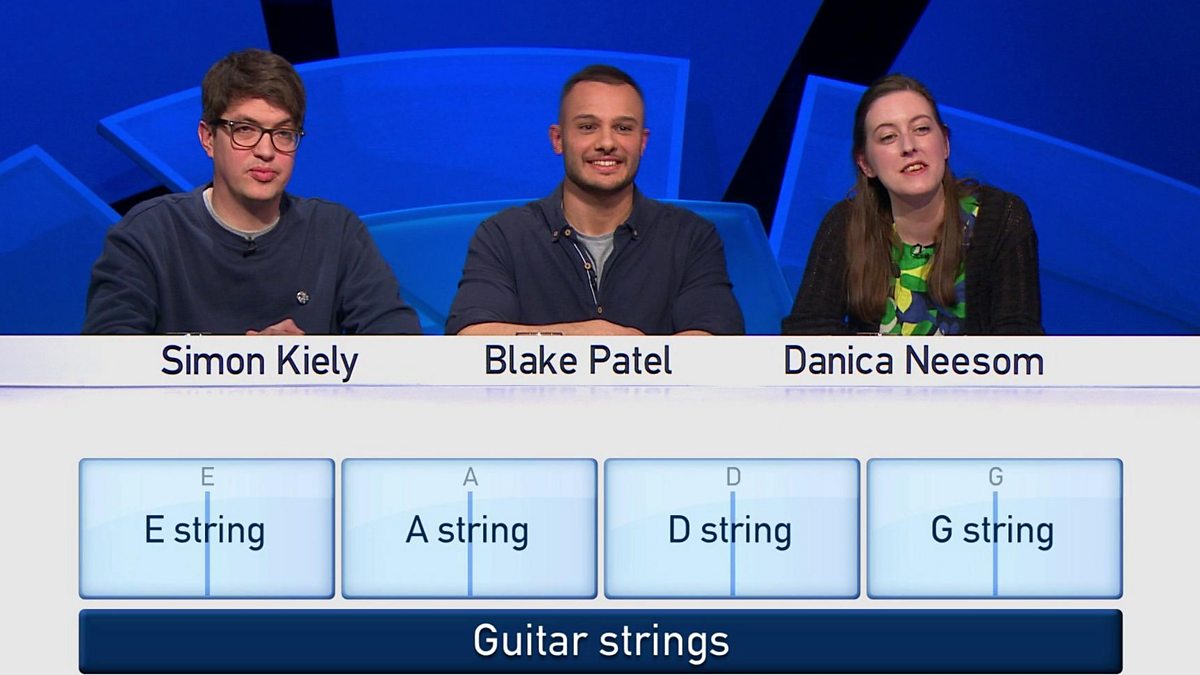 Victoria offers the team some handy mnemonics to remember the order of their guitar strings.