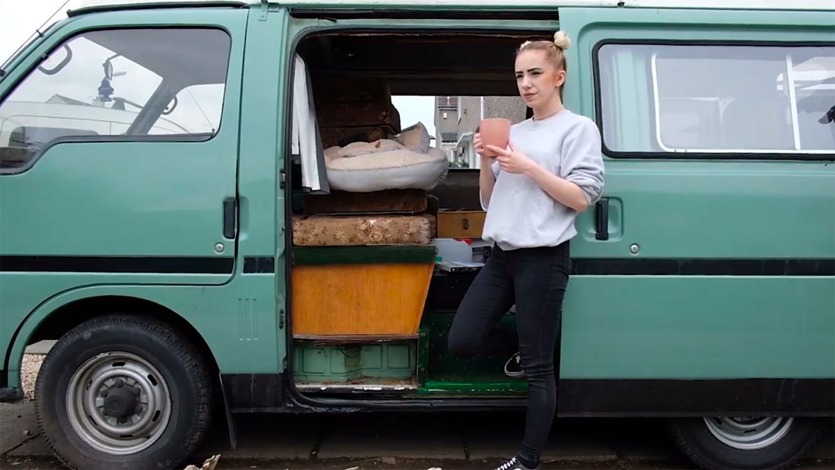 Fed up of working just to pay bills, Caitlin has decided to renovate a van to live in.