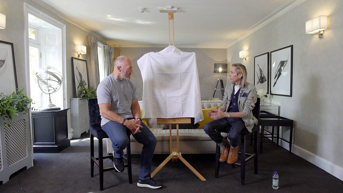 Teyrneg i'r diweddar Iwan Gwyn Parry, sydd yma'n portreadu'r hyfforddwr rygbi Robin McBryde. Tribute to the landscape artist, the late Iwan Gwyn Parry. Here he paints coach Robin McBryde.