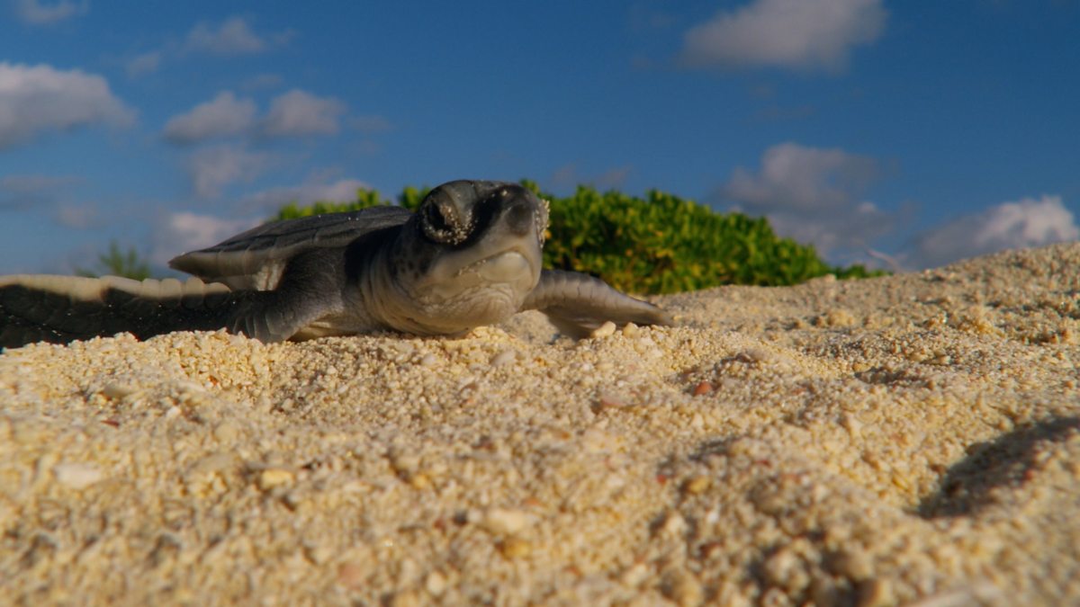 As soon as they hatch, green turtles have to beat the odds to reach the safety of the sea.