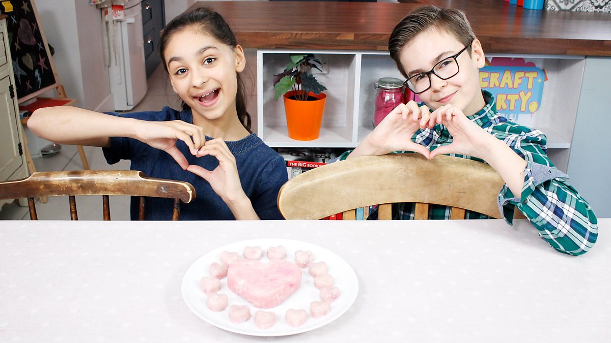 Cara and Ethan have a hearty appetite when they cook up a heart-shaped pizza, while India and Stanley have a fresh idea for art when they make heart soap as gifts.