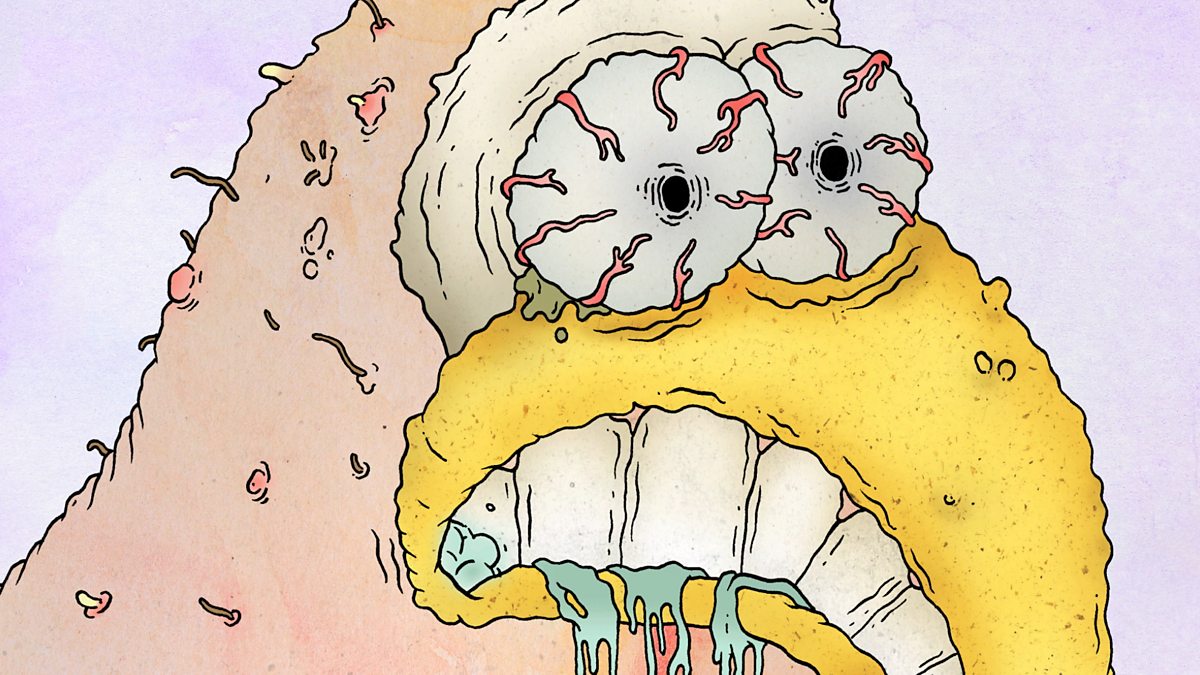 Wheeze is an animation by artist Adam Lewis Jacob and illustrator and animator Jason Kerley that creates a critical and satirical take on British life, work and leisure and the values and politics that inform it, reinterpreting political cartoonist Steve Bell’s Penguin character into a surreal and psychedelic animation.