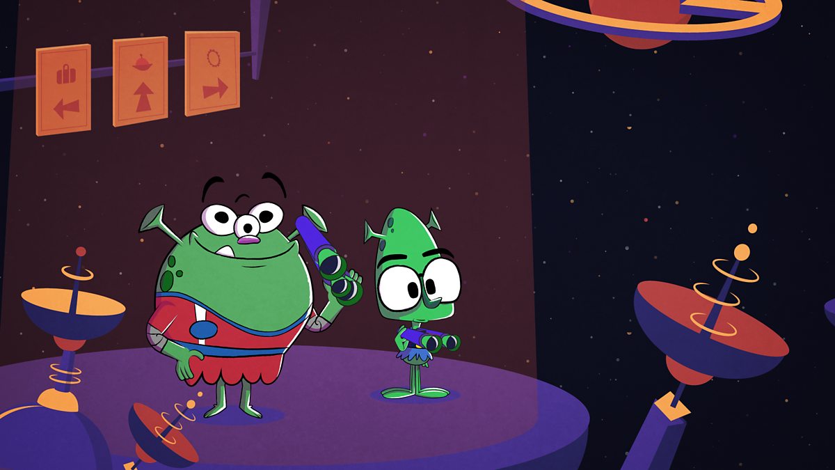 At home, Fin and Snoot count some of their favourite snacks: space grubs and astro bugs.