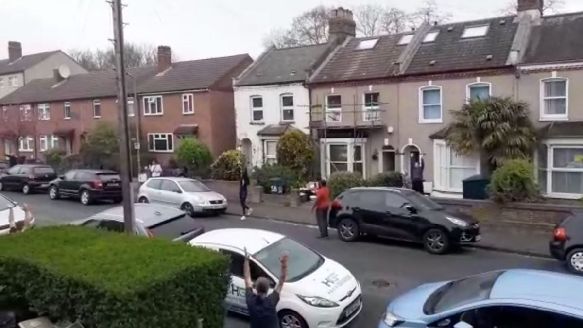 Four time Olympian Donna Fraser leads a workout from the street for her neighbours.