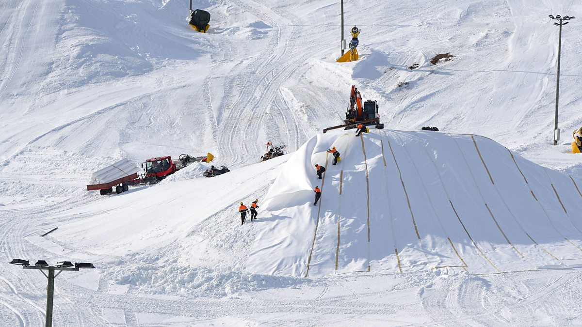 Locals have decided they must do something to help themselves next season – so the resort is using special fabric to wrap up the snow and save it for next season.