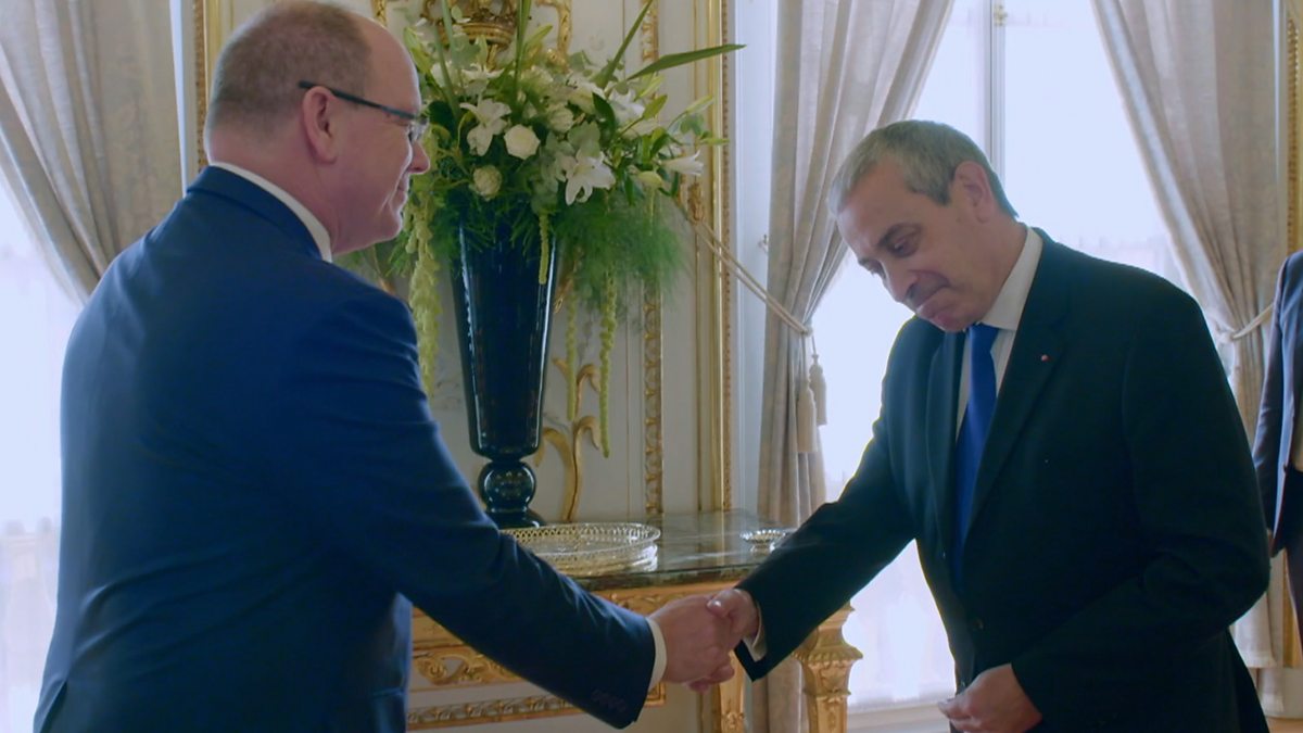 At the Palace, Prince Albert, his butler and his Carabiniers prepare for the ceremonial visit of the new French Ambassador.
